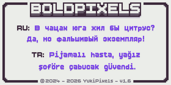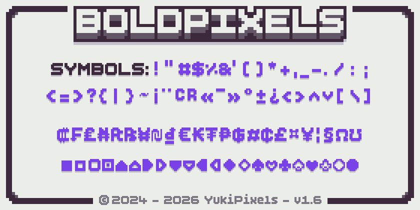 - Attribution: You have to give the appropriate credit! Mention BoldPixels by YukiPixels (@YukiPixels).