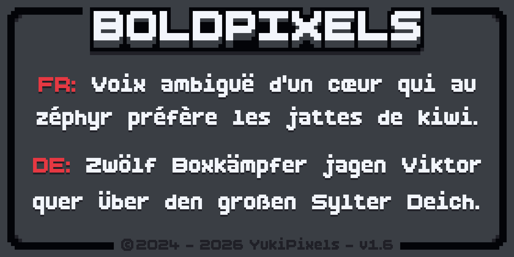Mention in your project's credits BoldPixels Font by Yūki (@YukiPixels)